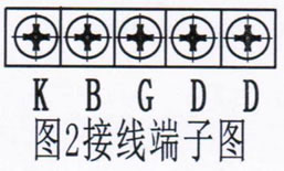 松開探測器外殼固定螺釘,打開隔爆腔將電纜從一側進線口穿入,DC24V電源線接在線路板的輸入端子D、D上(無極性要求),信號線接G、K為常開無緣觸點,G、B為常閉無緣觸點。見圖2接線圖。